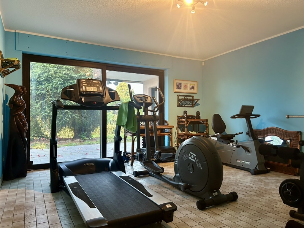 - Fitnessraum mit Zugang auf die Terrasse zum Garten