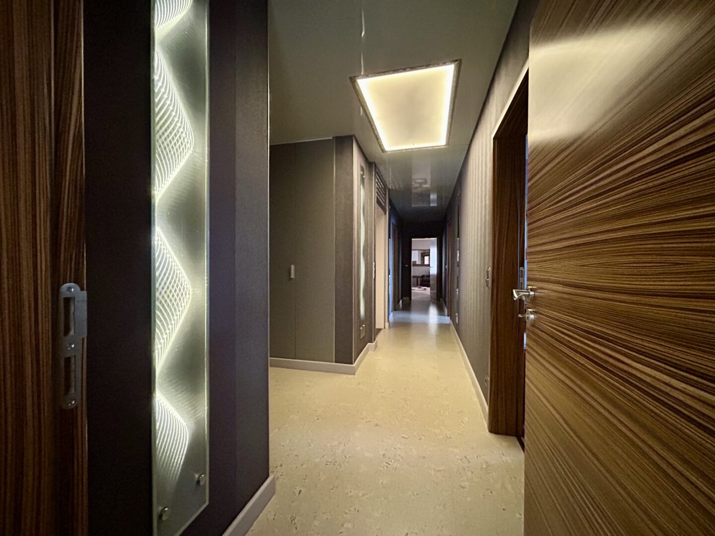 - Lackspanndecke mit Lichteffekt und seitlicher integrierter Wandbeleuchtung